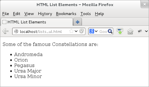 Let us now rewrite another example that also has a list of items but this time, the ordering is not so important. Accordingly, we use an unordered list.